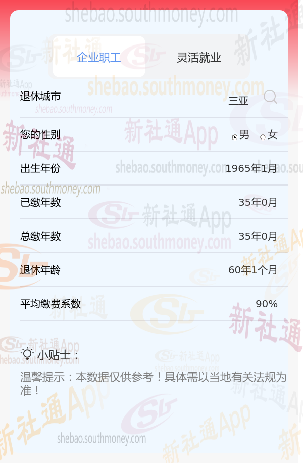 新社通app养老金计算器计算所得: