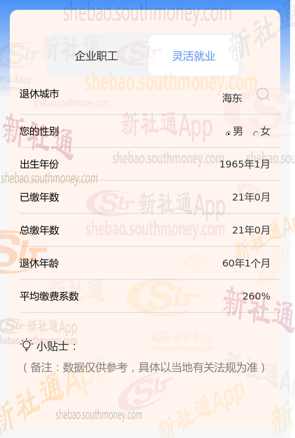新社通app养老金计算器计算所得: