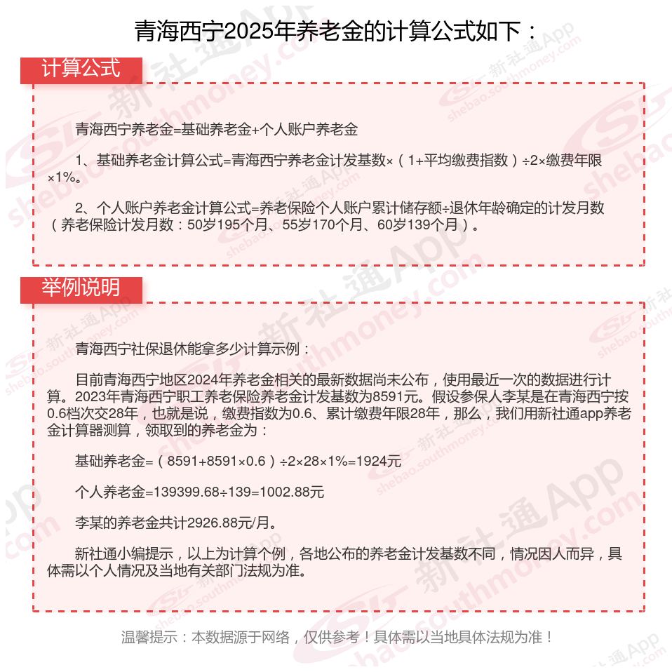 2025青海西宁退休金领取标准大概能拿多少钱?据新社通app获悉,对于即将或已经步入退休年龄的“老人”来说,养老金的多少直接关系到他们的切身利益,但是很多人又不会计算自己的养老金,下面我们就一起来详细介绍青海西宁养老金的计算方法。