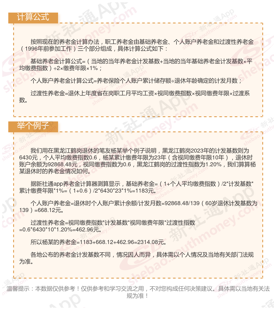 黑龙江鹤岗退休工资养老金计算方法及公式2024年最新(举例说明)