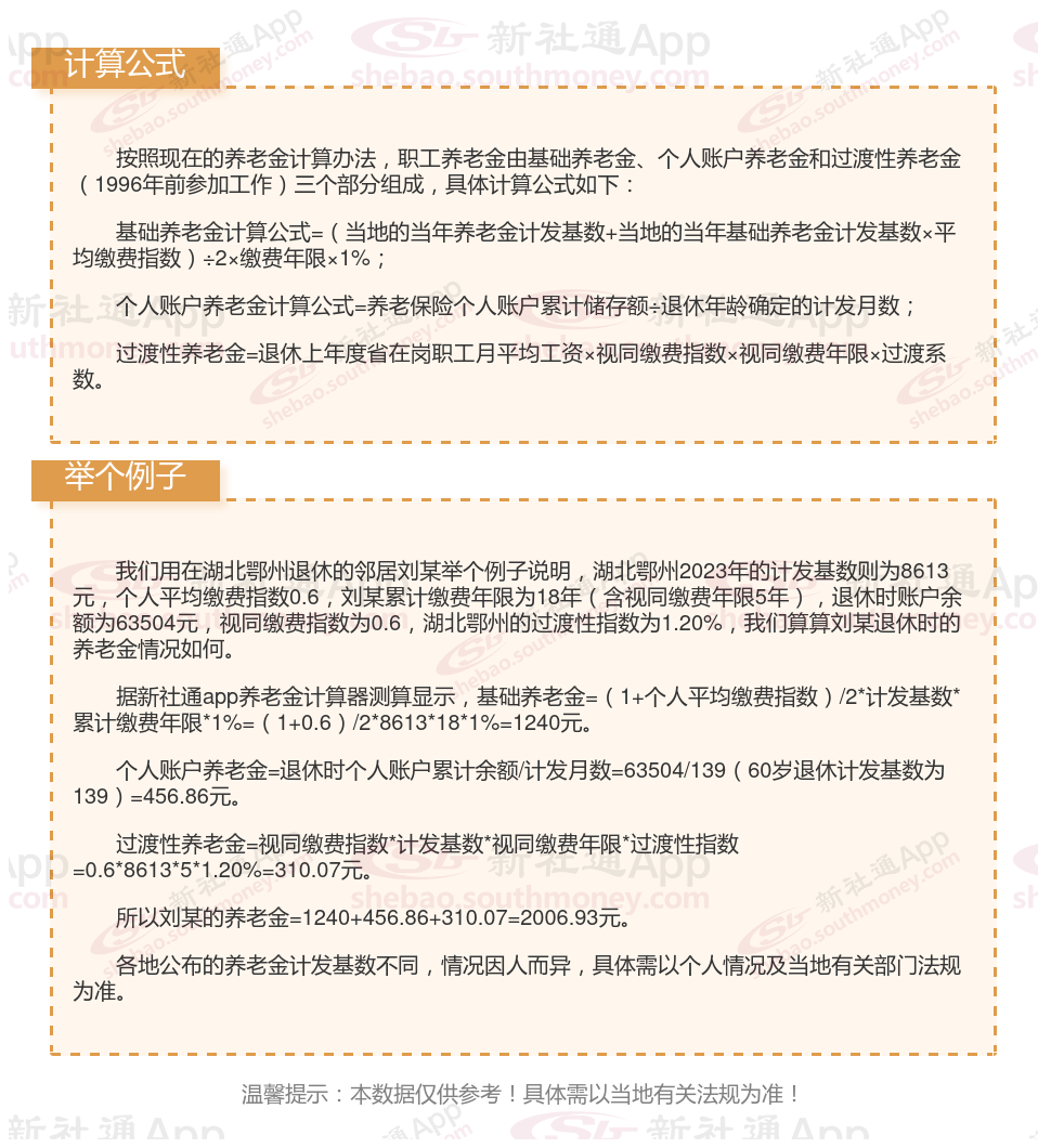 湖北鄂州退休工资养老金计算方法及公式2024年最新(举例说明)