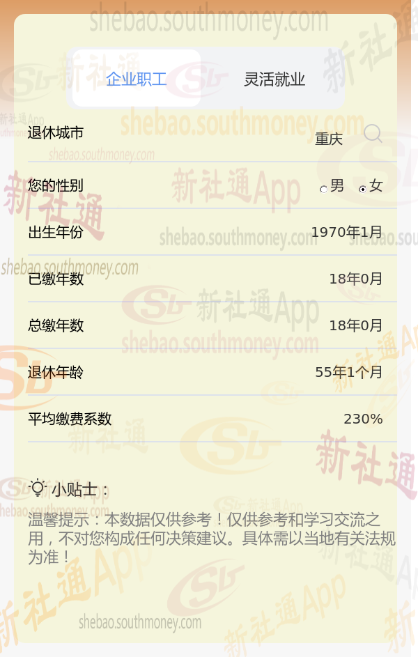 新社通app养老金计算器计算所得: