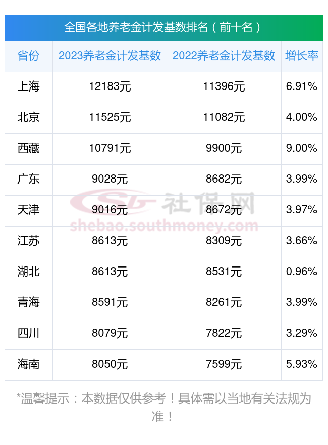 广东惠州养老金计发基数是多少?附全国各地养老金计发基数排名前十,看看有哪些城市!