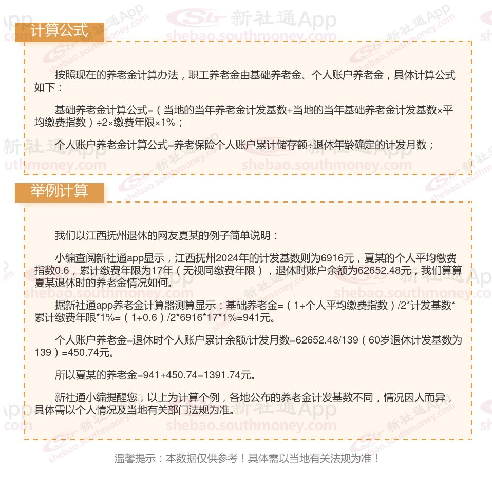 江西抚州退休工资养老金计算方法及公式2024年最新(举例说明)