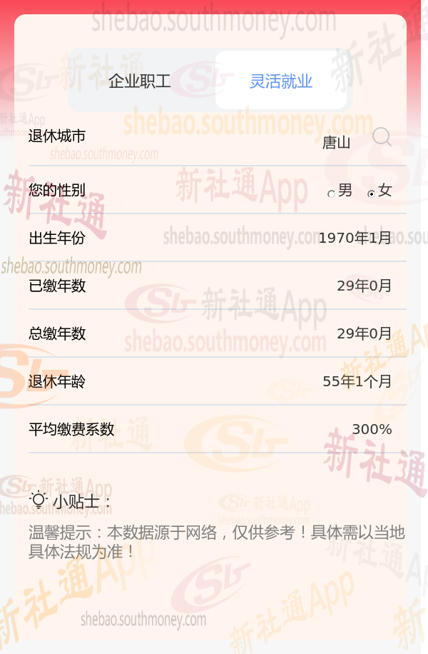 笔友秦某退休城市在唐山,性别:女,出生年份:1970,缴费档次:300%为例,新社通app养老金计算器预设工资增长率等参数为3%。在此情境下,其退休后能领取的养老金数额需通过计算器精确得出,但基于上述条件,预计数额会相对较低。为获准确估算,建议秦某使用计算工具按要求输入个人信息进行计算,具体数额依个人情况及当地法规而定。
