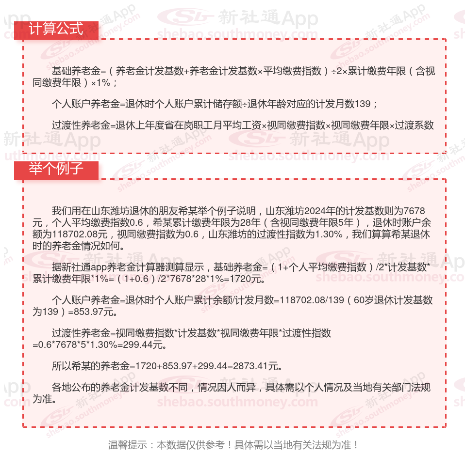 山东潍坊退休工资养老金计算方法及公式2024年最新(举例说明)