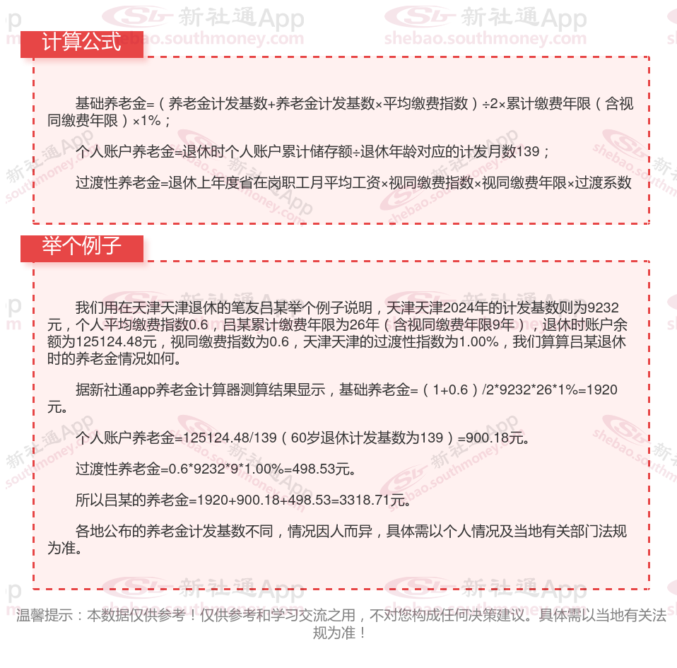 天津天津退休工资养老金计算方法及公式2024年最新(举例说明)