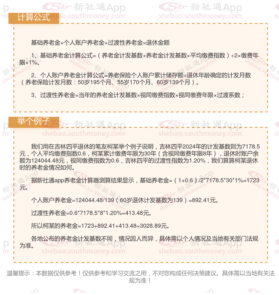 吉林四平退休工资养老金计算方法及公式2024年最新(举例说明)