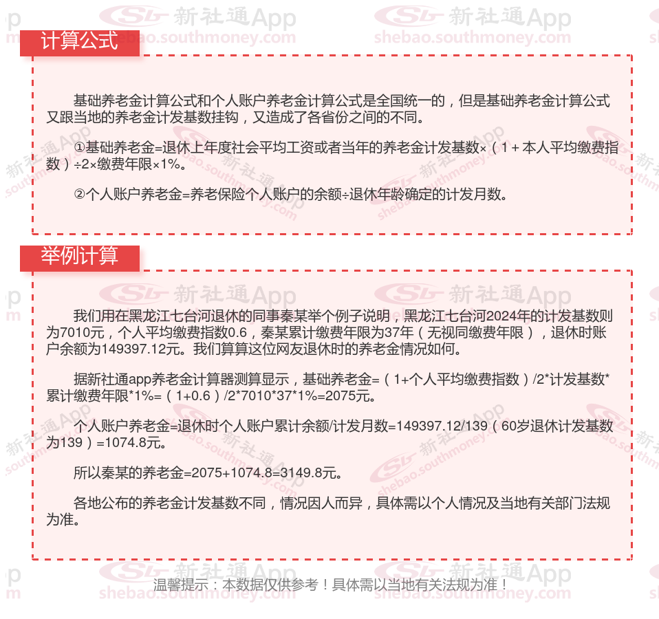 黑龙江七台河退休工资养老金计算方法及公式2024年最新(举例说明)