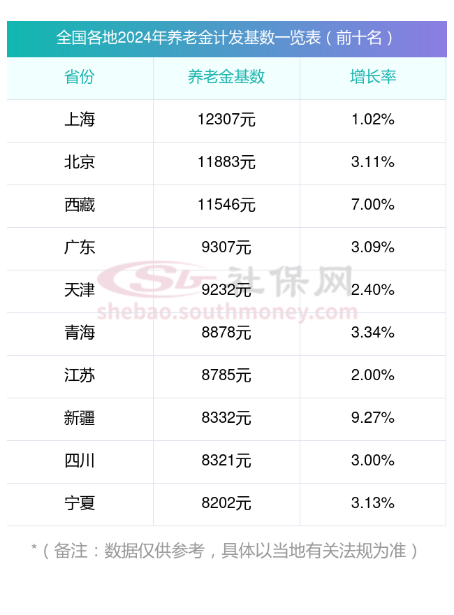 二、全国2023年养老金计发基数的前10省份的具体情况