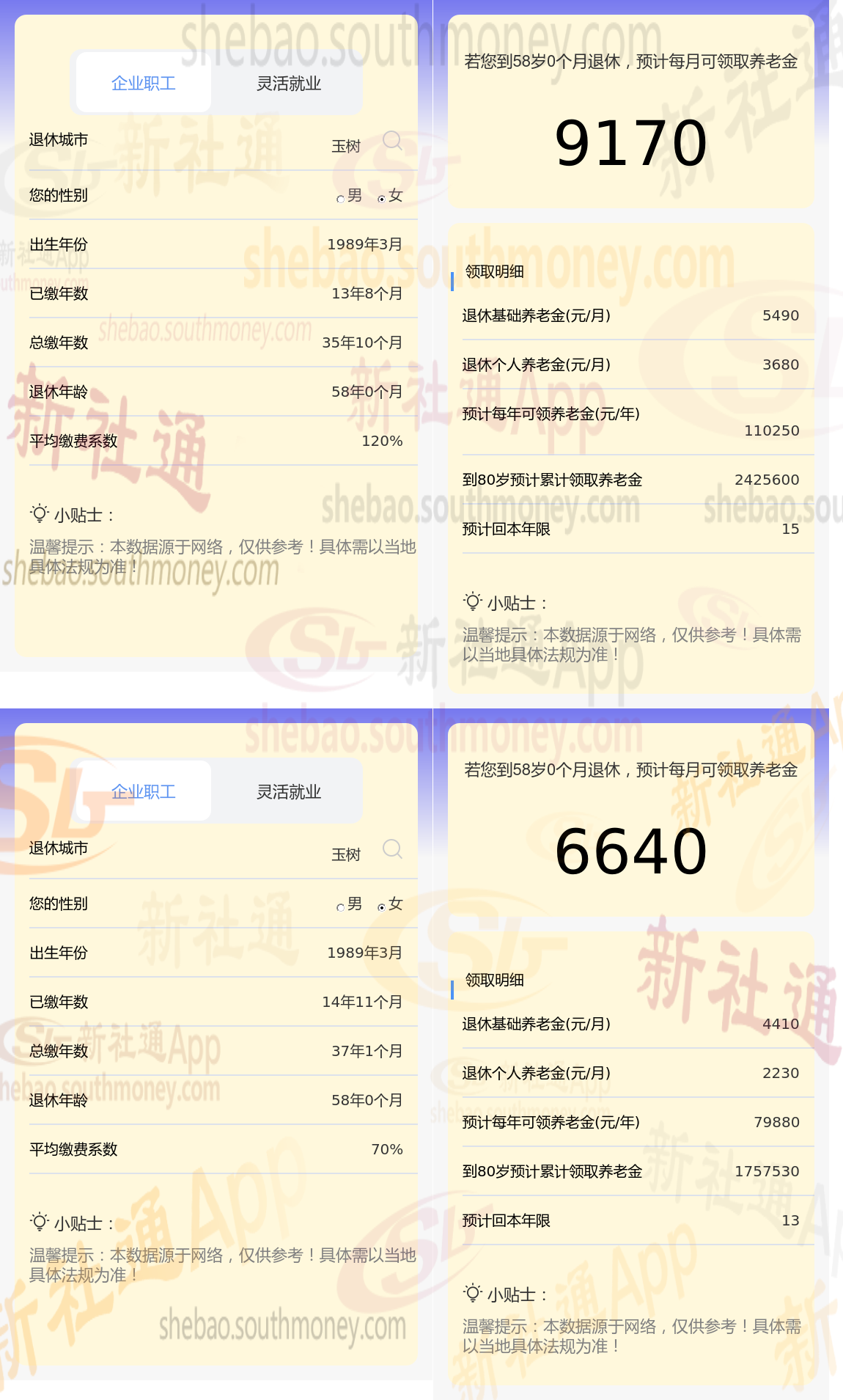 下面社保网-APP一起来看下,以玉树为例(不考虑过渡养老金):