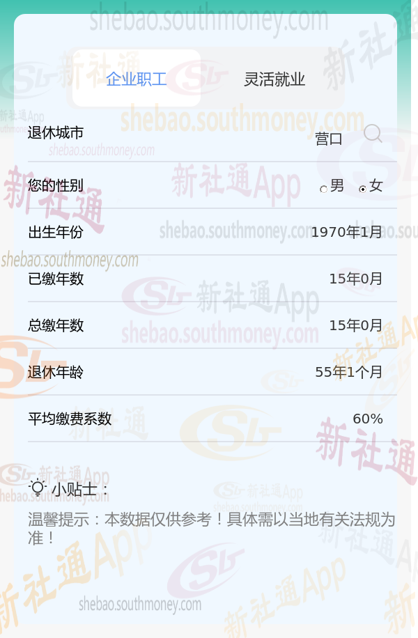 新社通app养老金计算器计算所得: