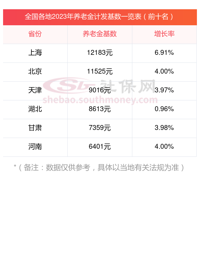 全国2023年养老金计发基数排名前十的城市,看看有你的城市吗?在这里简单分享一下: