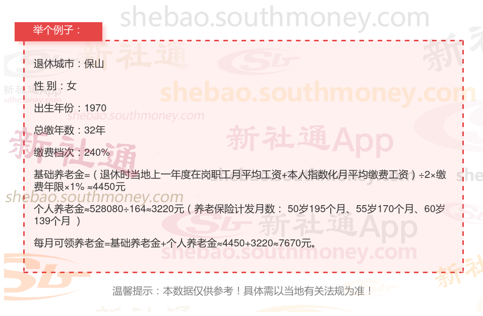 下面一起来分享个例子:亲戚夏某,社保缴纳32年要退休了,按240%档位缴纳,估算每月领取大约会比7600元多。退休金每月多少钱?