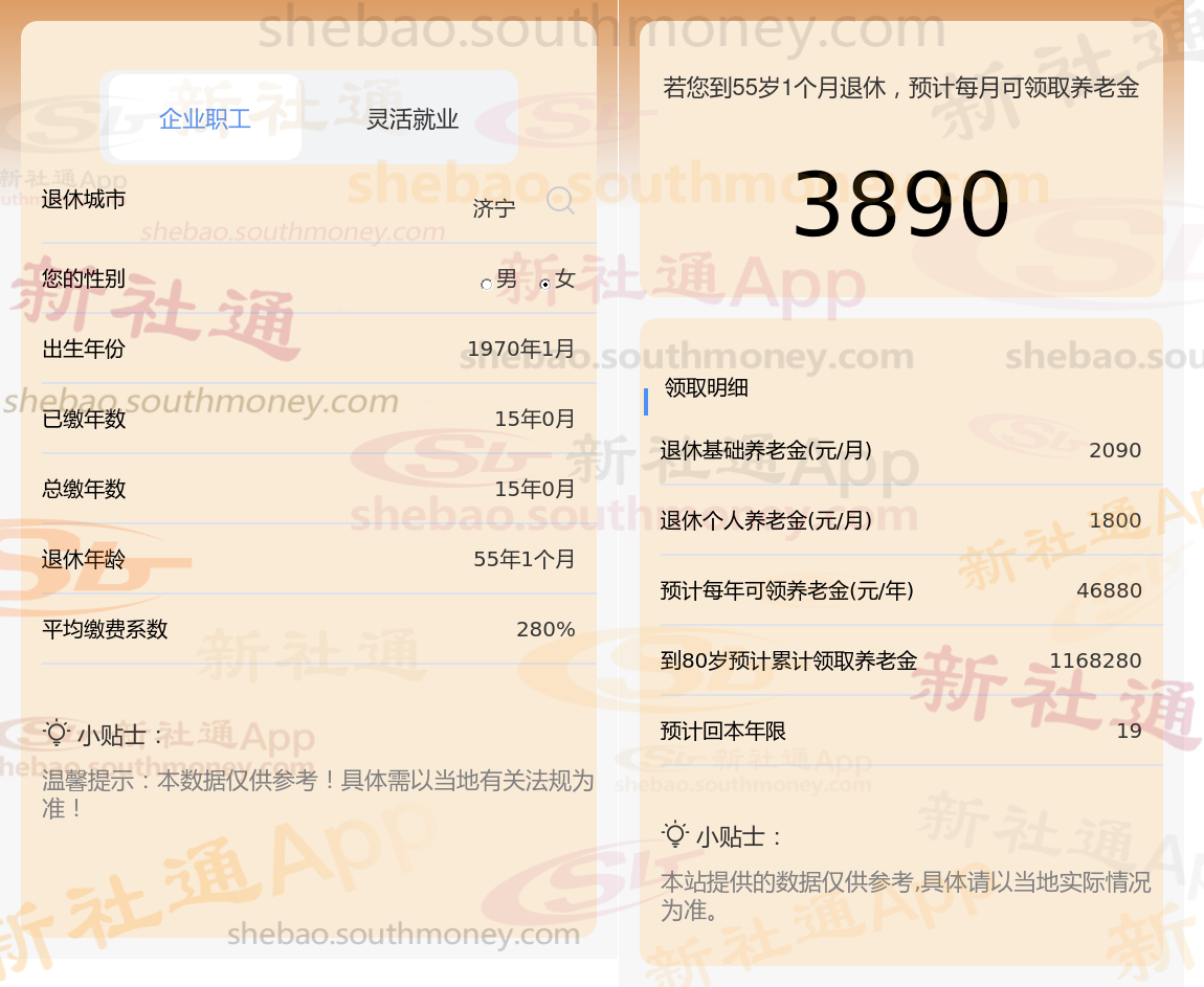 最近一位济宁退休的女性企业职工人员后台咨询,准备要退休了,工龄15年,每月按照280%档位缴纳,养老金如何计算呢?能领到3400元吗?