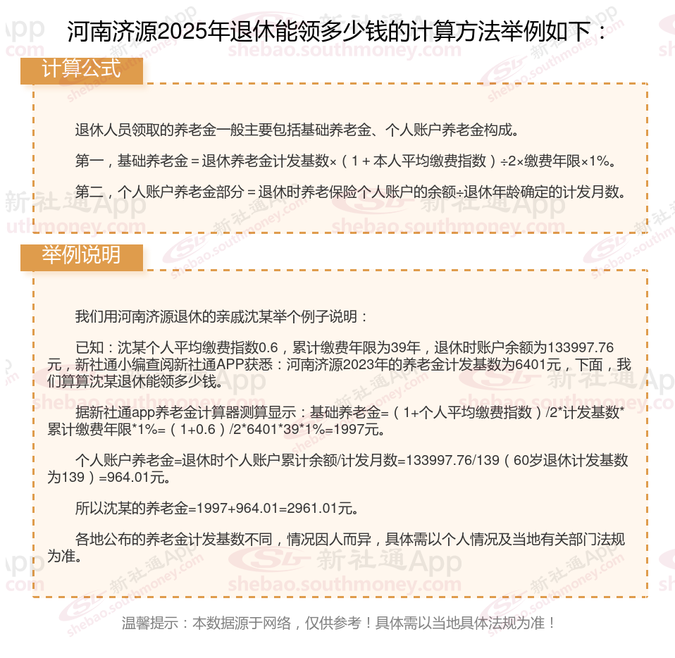 一、河南济源养老金计算方法及公式2024最新(在线计算器)