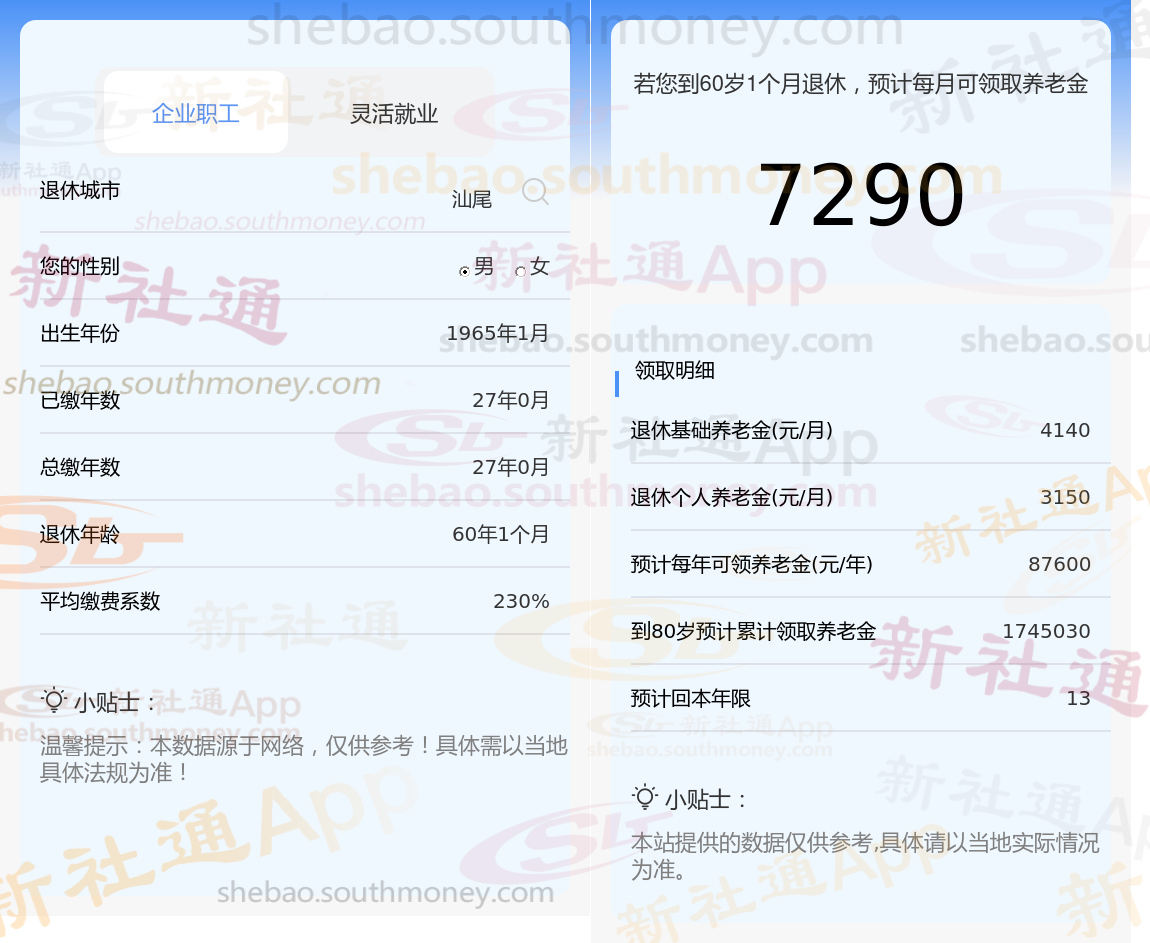 基础退休工资:基本养老金由统筹养老金和个人账户养老金组成。基本养老金根据个人累计缴费年限、缴费工资、当地职工平均工资、个人账户金额、城镇人口平均预期寿命等因素确定。通过公式计算出每月大约4140元。