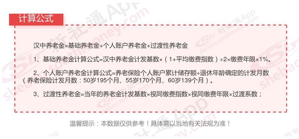 下面新社通一起来看下,以汉中为例(不考虑过渡养老金):