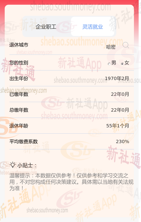 和社保网app一起看个例子,哈密工龄22年养老退休金如何计算?