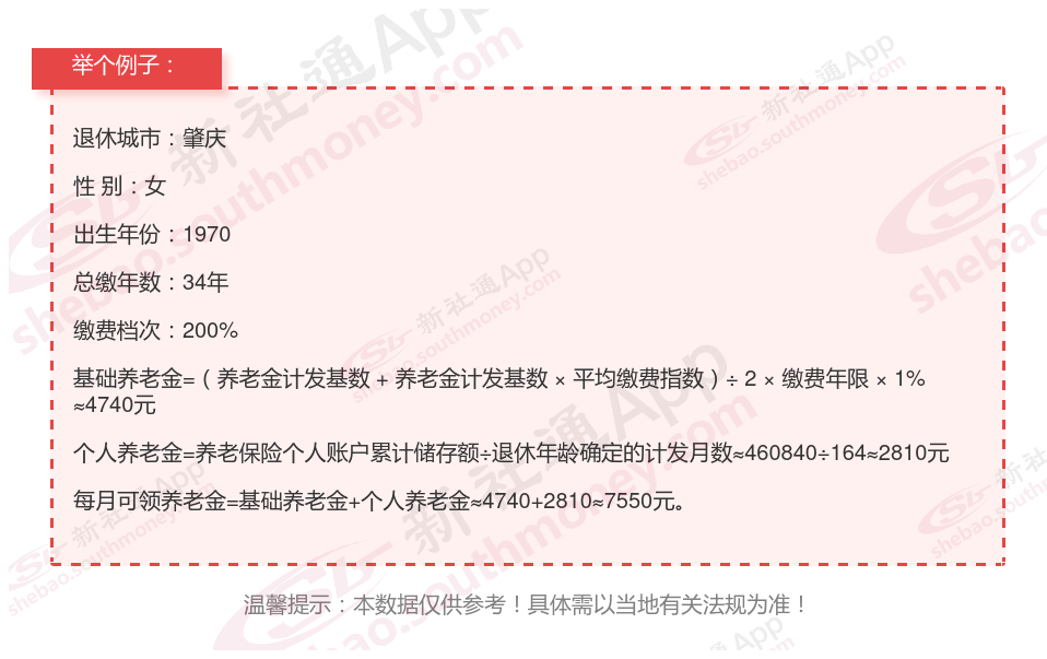 新社通app养老金计算器计算所得: