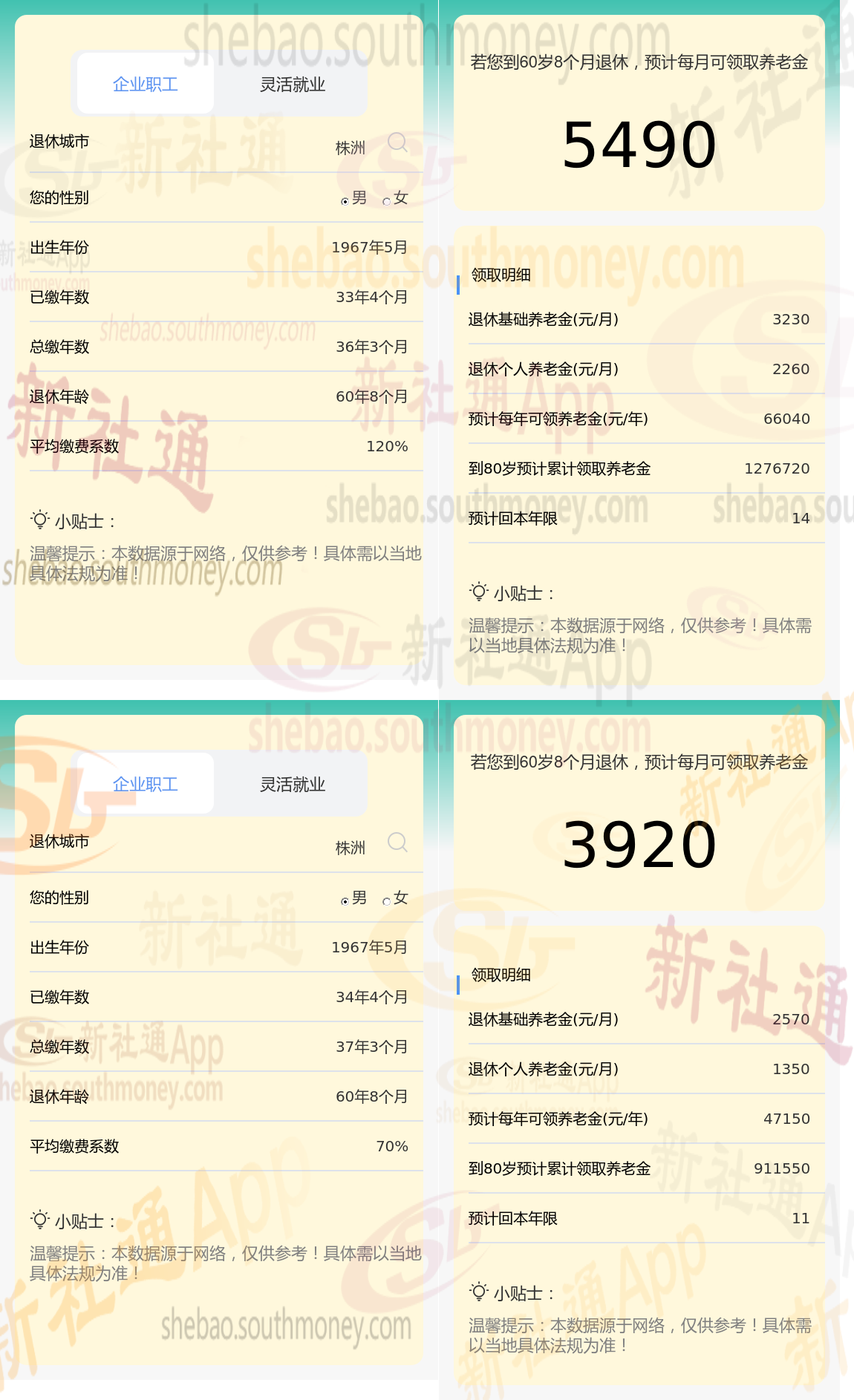 老周:退休城市株洲,缴费年限37年,退休年龄60周岁,但是按70%缴纳社保。