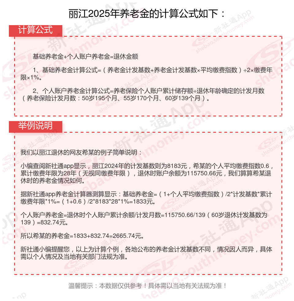 以上就是丽江退休人员养老金计算的全部内容,希望对你有帮助,欢迎关注新社通app解锁更多社保专业资讯。