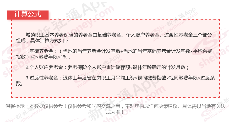 第三,南京过渡性养老金部分,是最复杂的一部分,因为各个省份的计算方式都有不同。但是大部分都跟养老金计算基数挂钩,根据建立个人账户制,以前的缴费年限和本人的平均缴费指数、视同缴费指数等因素,综合计算而来。