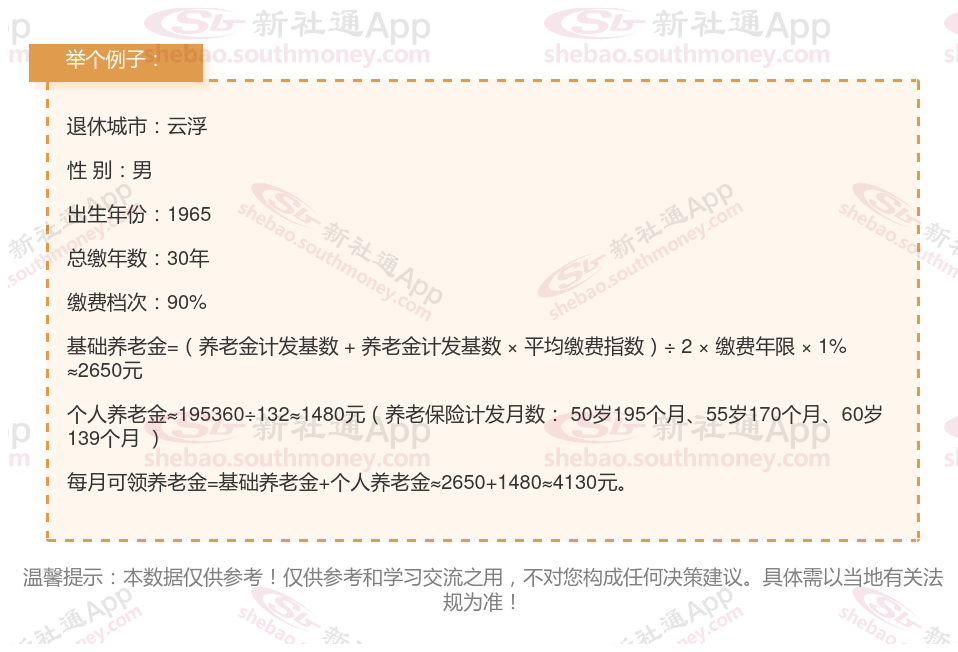 新社通app养老金计算器计算所得: