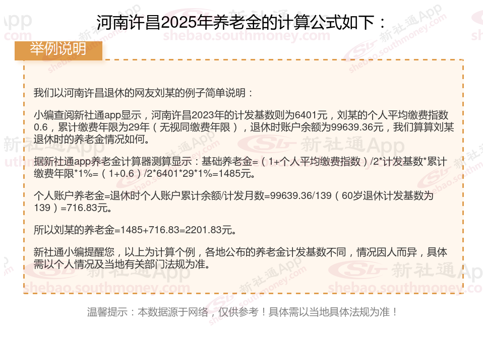 据新社通app获悉:河南许昌2025年退休能领多少钱的计算方法如下: