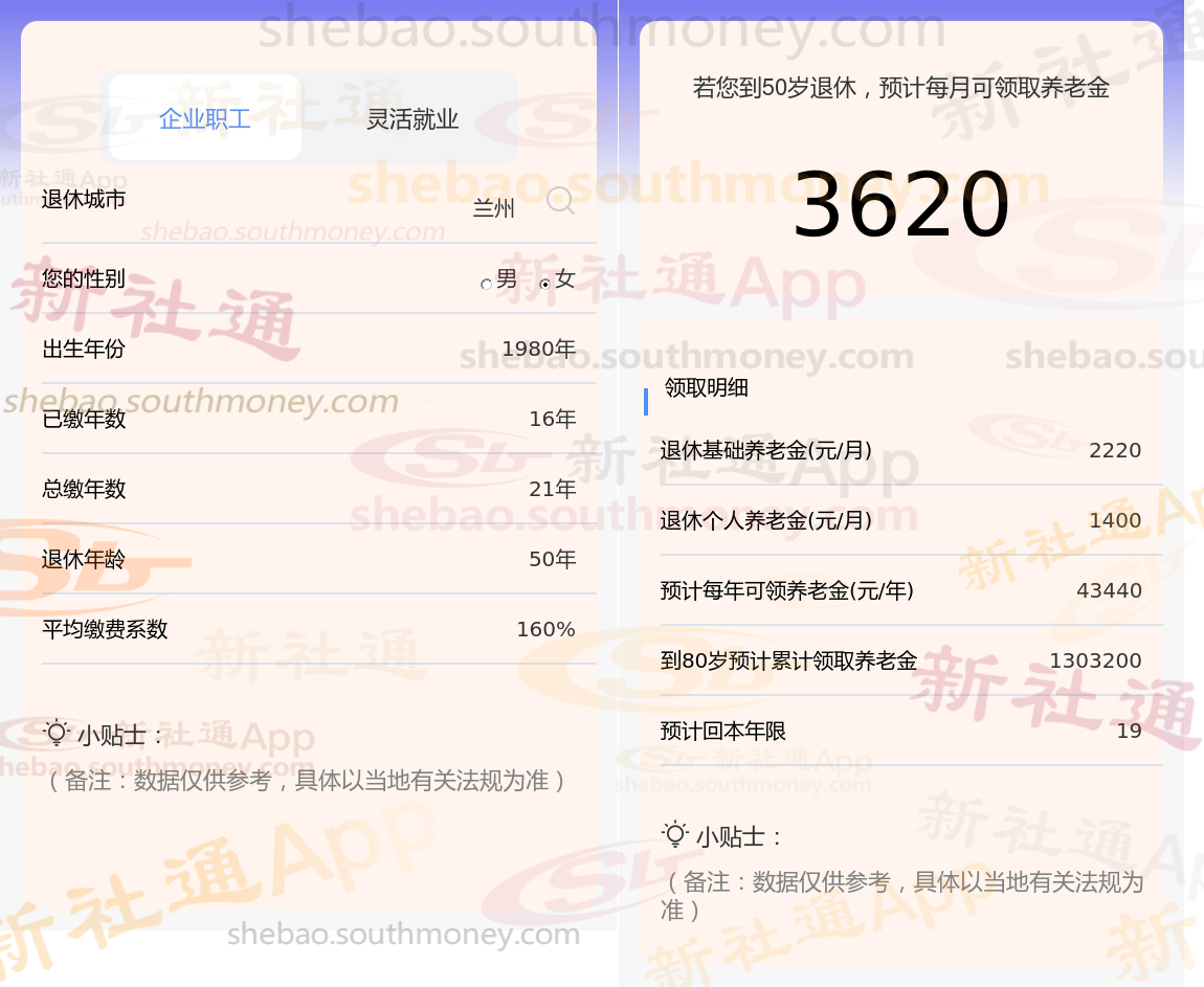 通过新社通APP-养老金计算所得:退休城市、出生年份、退休年龄、缴费系数都相同的情况下,社保缴费年限累计21年时,计算如下: