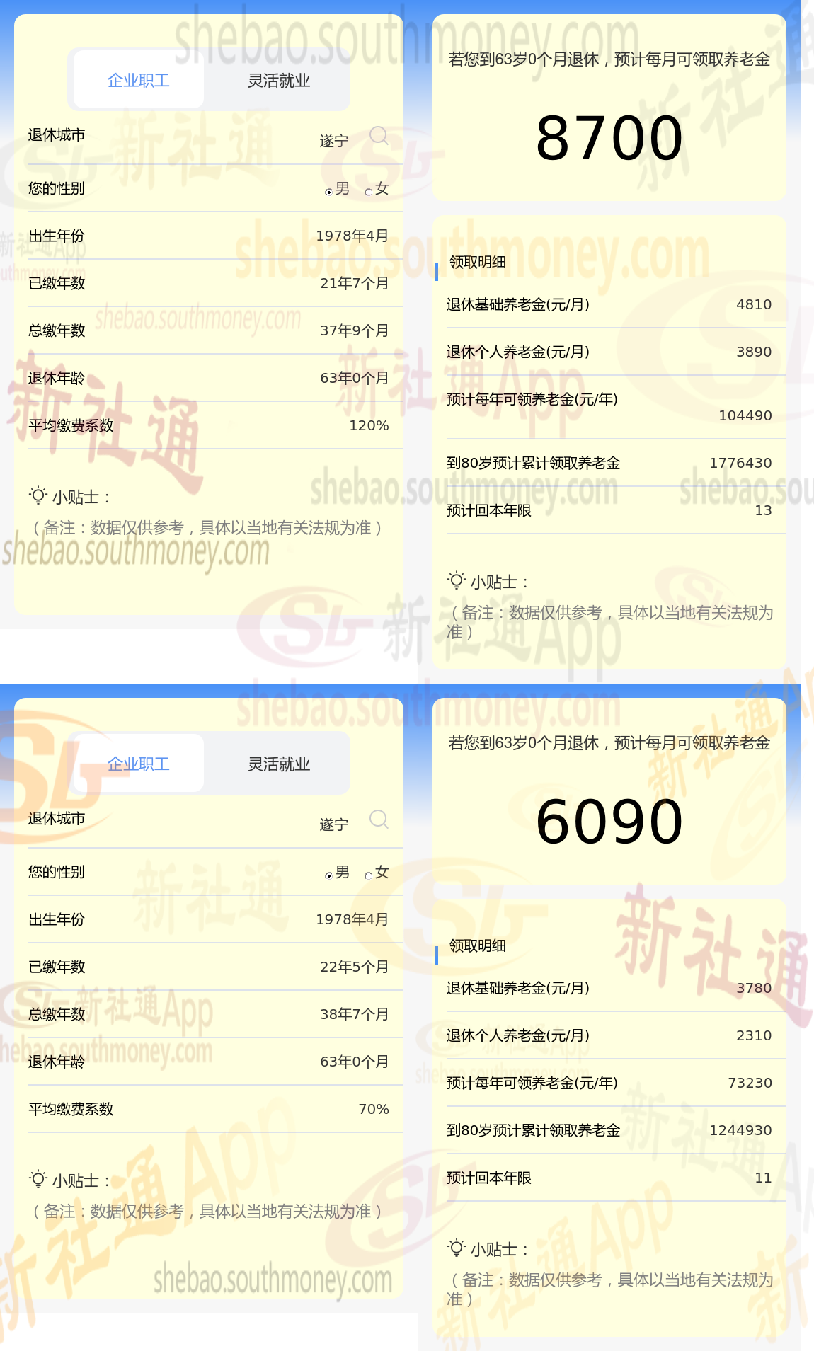 老周:退休城市遂宁,缴费年限38年,退休年龄63周岁,但是按70%缴纳社保。