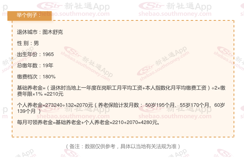 林某是一位男性,1965年出生,现已退休。他居住的城市是图木舒克,在职业生涯中,他累计缴纳了19年的社会保险,缴费档次为180%。