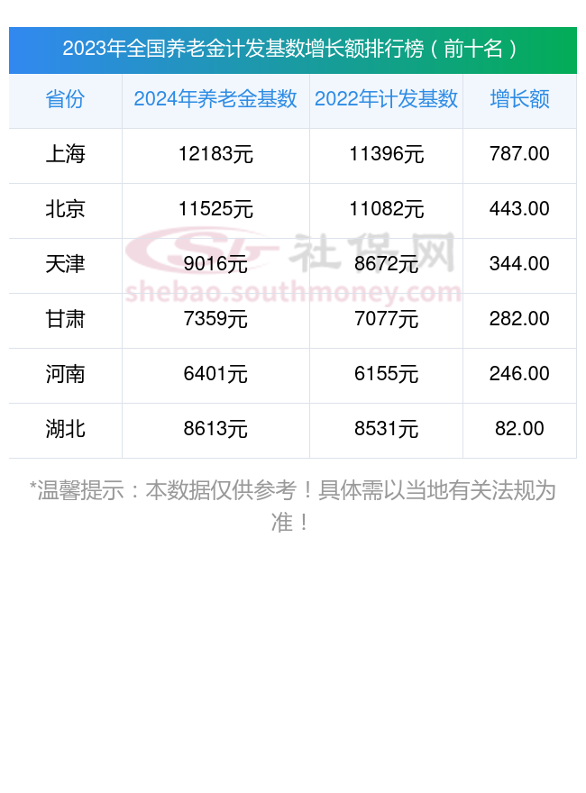 查阅新社通app显示,已经公布2023年养老金计发基数的前10省份的具体情况