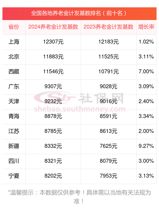 下面是已经公布2024年养老金计发基数的前10省份的具体情况