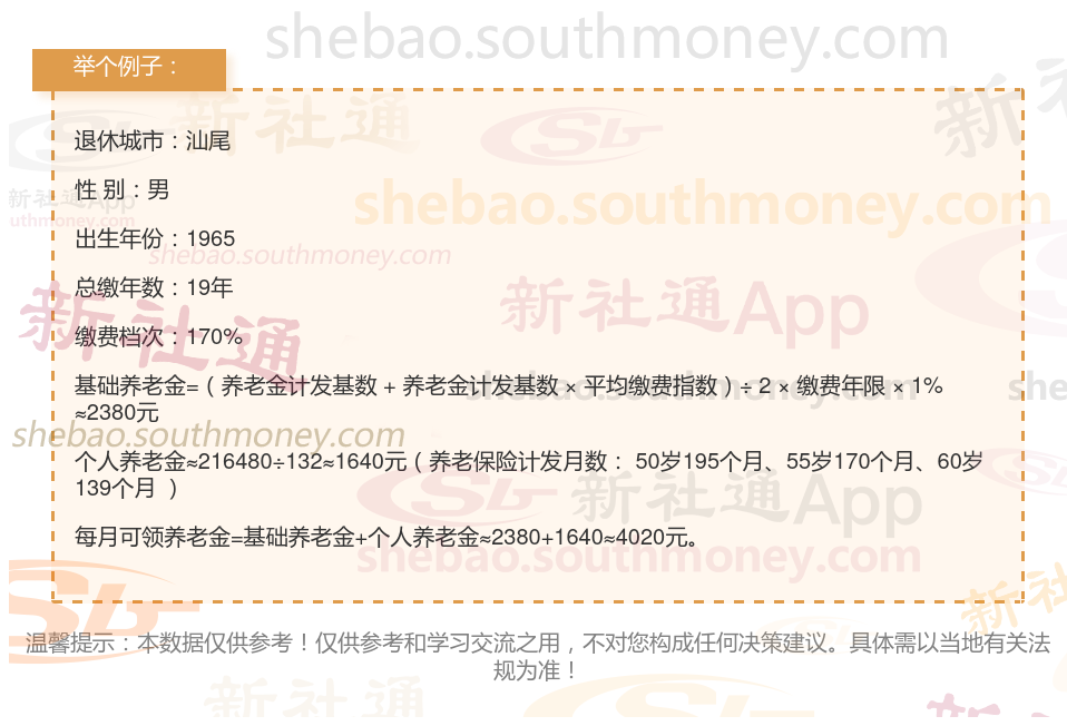 下面随着新社通-app小编一起来看看,广东汕尾社保交满19年每月领多少钱?