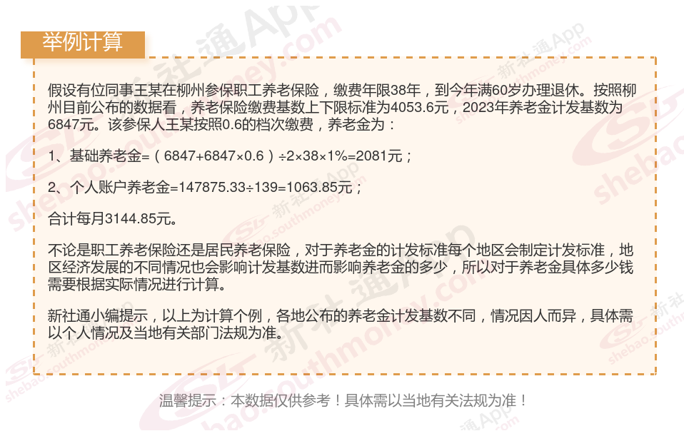 个人账户养老金=个人账户储存额÷计发月数(计发月数根据退休年龄和当时的人口平均寿命来确定。计发月数略等于(人口平均寿命-退休年龄)X12。目前50岁为195、55岁为170、60岁为139,不再统一是120了)。