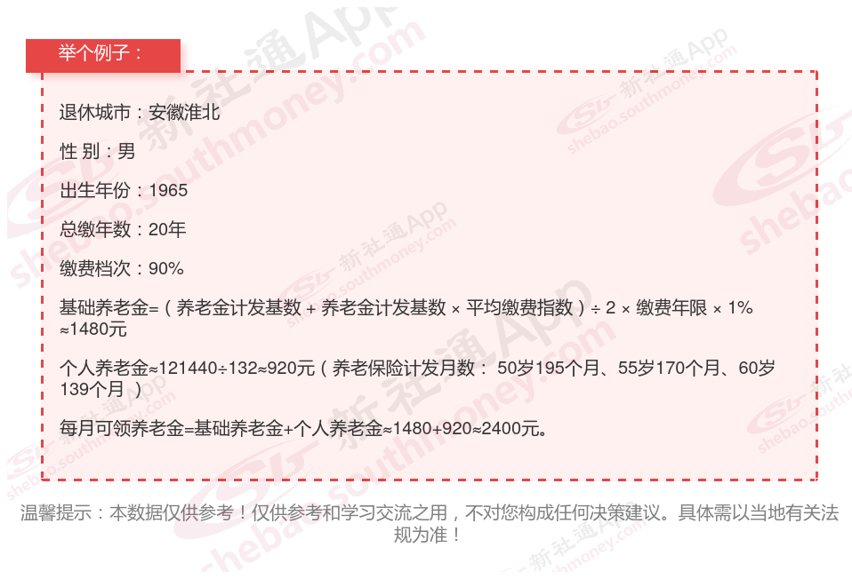 下面随着社保君一起来看看,安徽淮北交20年养老保险每个月能领多少?