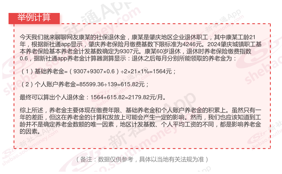 据新社通app获悉:肇庆2025年退休能领多少钱的计算方法如下: