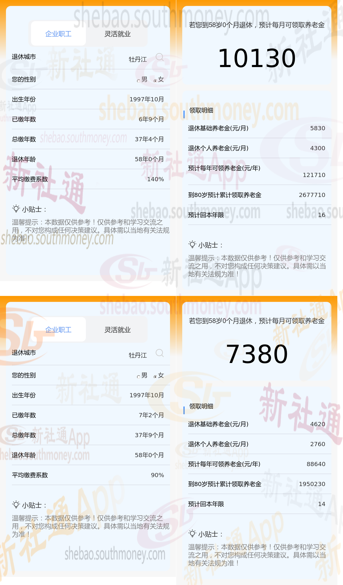 老魏:退休城市牡丹江,缴费年限37年,退休年龄58周岁,但是按90%缴纳社保。