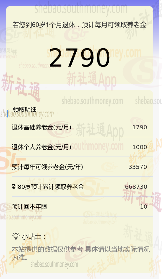 新社通app养老金计算器计算所得: