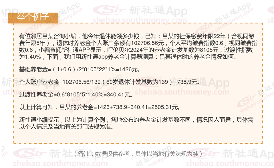 呼伦贝尔养老金的计算公式: