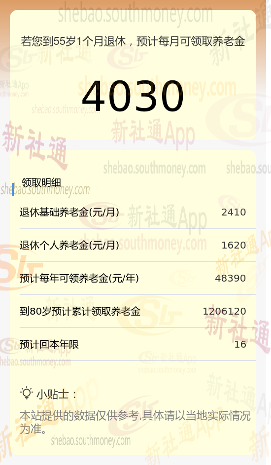 养老金总和:两者合计2410元+1620元,您每月的养老金总额为4030元。