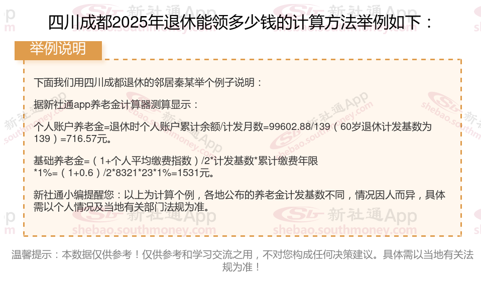 1、基础养老金计算公式=四川成都养老金计发基数×(1+平均缴费指数)÷2×缴费年限×1%。