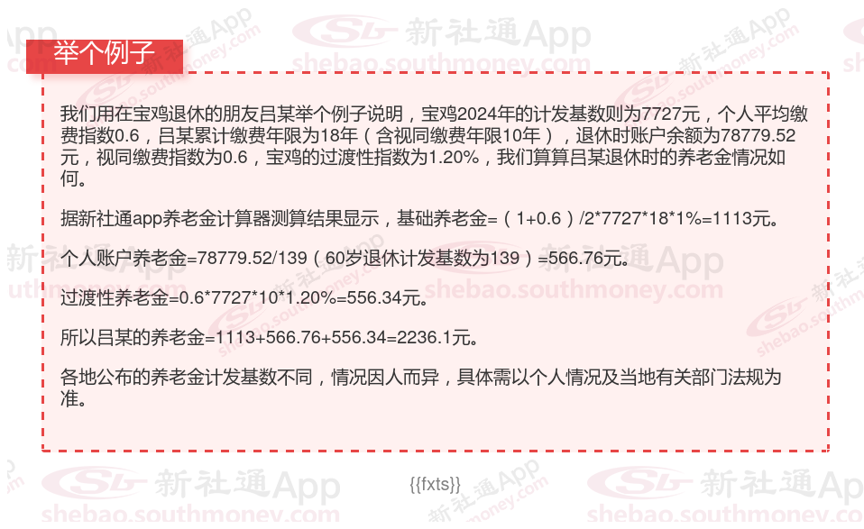 退休人员注意,宝鸡2025年养老金计算公式来了,快来看一下你能领多少钱吧!据新社通app获悉,养老金对于所有人来说都是非常重要的,对于年轻人来说,它是对晚年生活的提前安排,对于老年人来说它是重要的收入来源,也是退休后安享晚年的经济支柱。