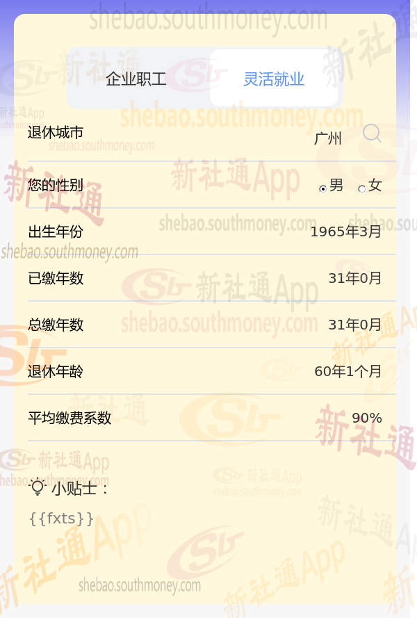 新社通app养老金计算器计算所得: