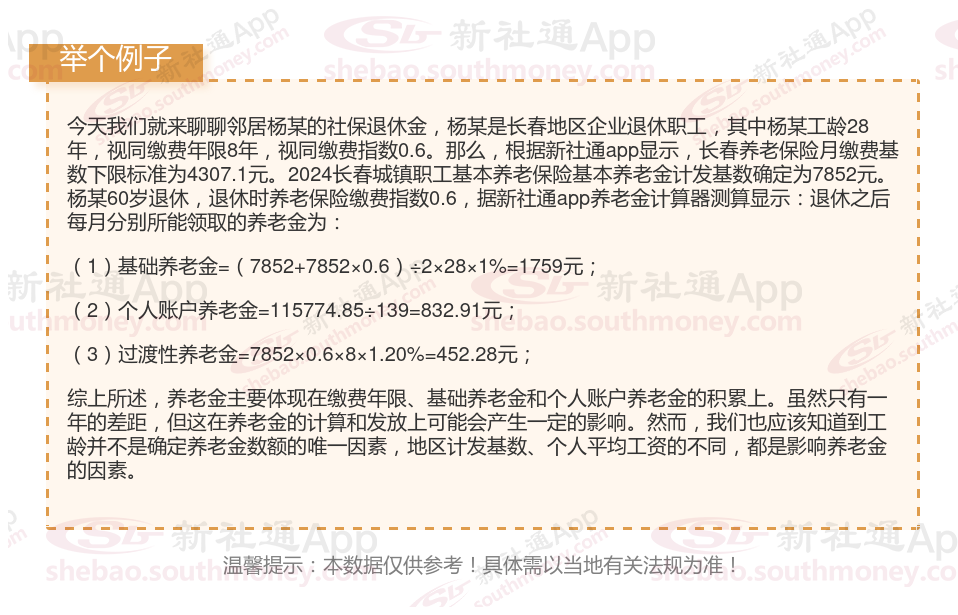 1、基础养老金计算公式=长春养老金计发基数×(1+平均缴费指数)÷2×缴费年限×1%。