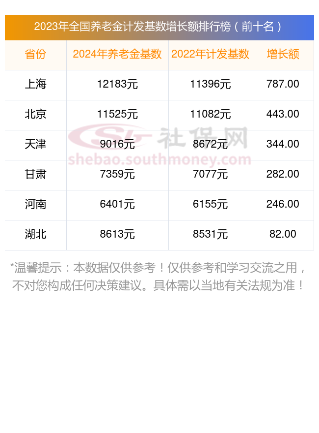 查阅新社通app显示,已经公布2023年养老金计发基数的前10省份的具体情况