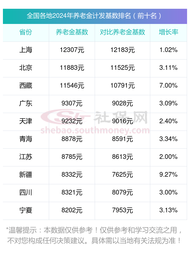下面已经公布2023年养老金计发基数的前10省份的具体情况