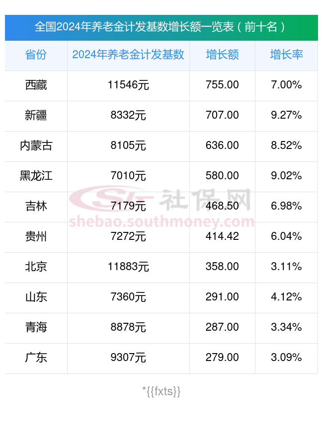 再来看看,全国各城市最新养老金计发基数公布前十名一览