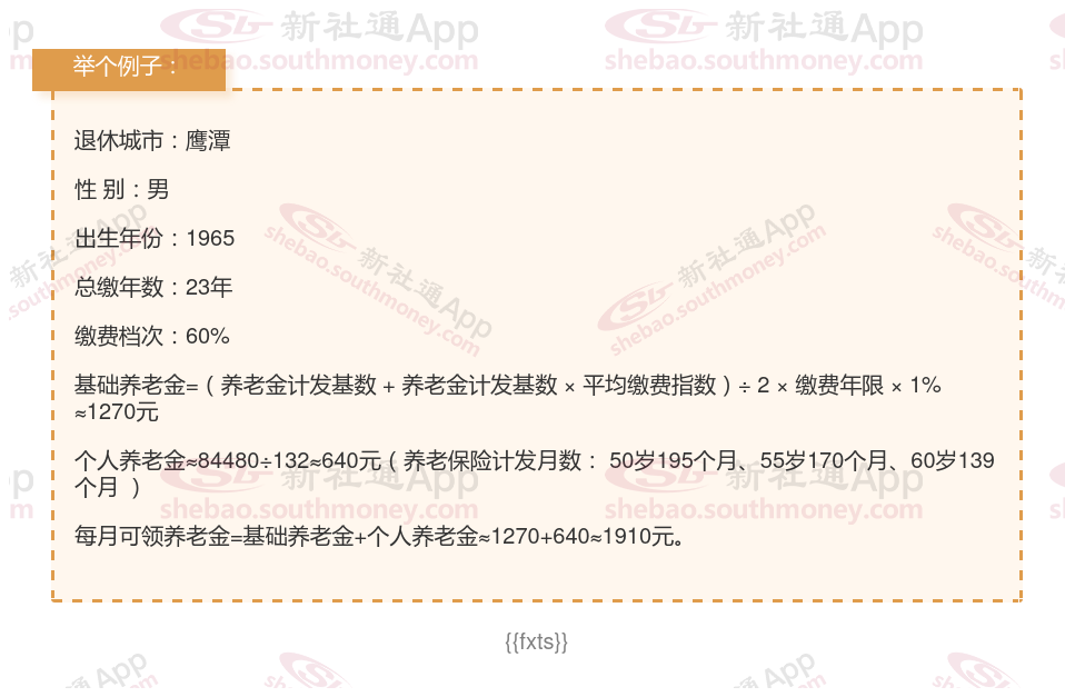 每月可领养老金=基础养老金+个人养老金≈1270+640≈1910元。